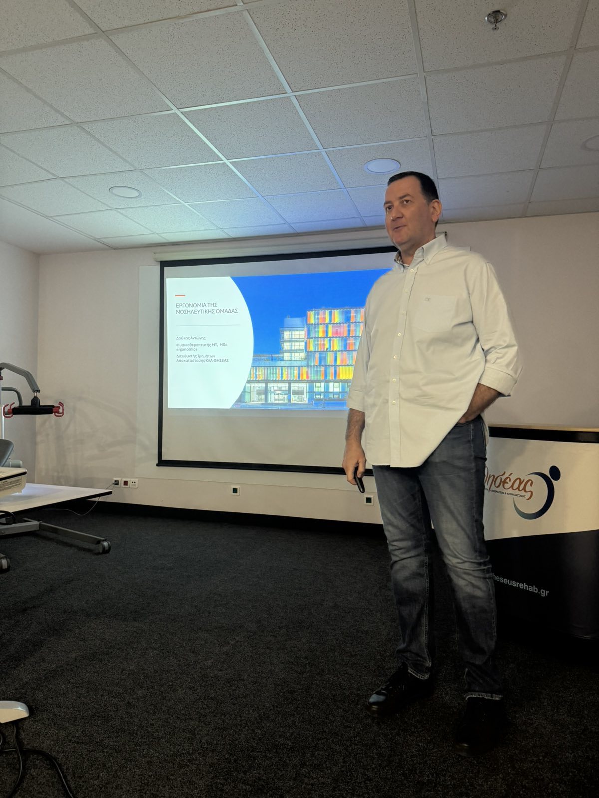 Με μεγάλη συμμετοχή και ιδιαίτερη επιτυχία πραγματοποιήθηκαν στο Κέντρο Αποθεραπείας & Αποκατάστασης Θησέας δύο εσωτερικά εκπαιδευτικά σεμινάρια, αφιερωμένα στην εργονομία και τους ανθρώπινους παράγοντες στη νοσηλευτική υπηρεσία, στη διαχείριση νευρολογικών και ορθοπεδικών ασθενών κατά τις μεταφορές, μετακινήσεις και τοποθετήσεις τους, καθώς και στην πρόληψη πτώσεων.