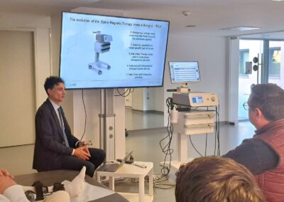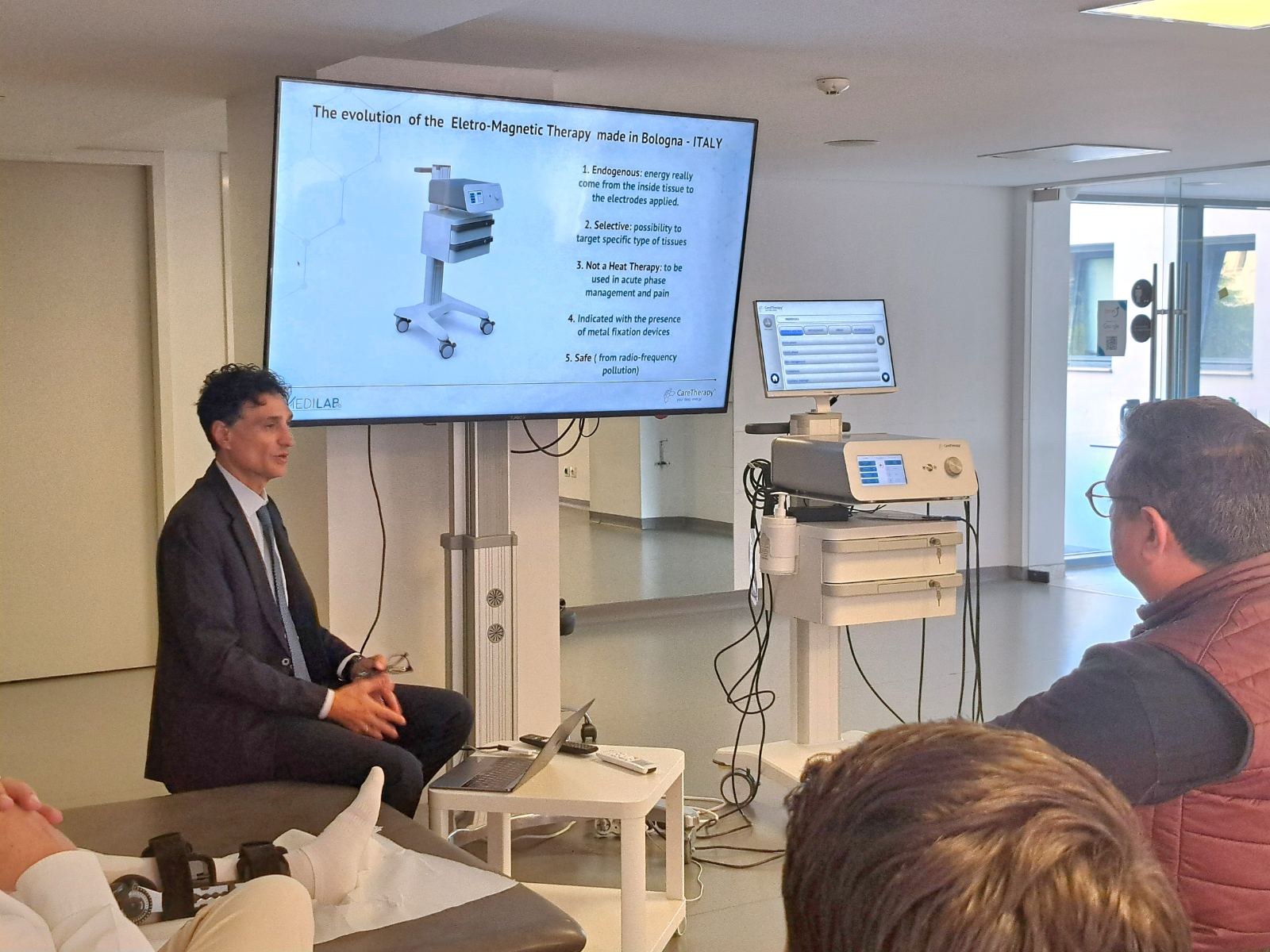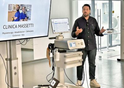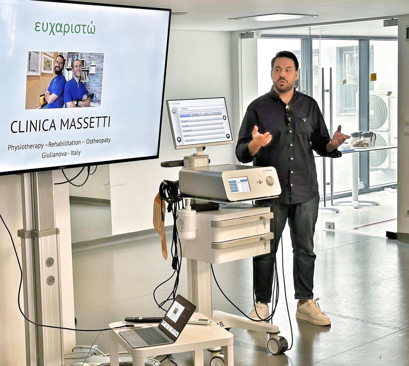 Κατά τη διάρκεια της παρουσίασης αναδείχθηκαν τα σημαντικά πλεονεκτήματα της τεχνολογίας Energy Modulation Control System, που εξασφαλίζει άμεσα και μετρήσιμα αποτελέσματα ακόμη και σε οξείες φάσεις τραυματισμών. Οι συμμετέχοντες είχαν τη δυνατότητα να παρακολουθήσουν αναλυτικά τη λειτουργία της συσκευής και να συμμετάσχουν σε hands-on πρακτικές επιδείξεις, εξερευνώντας τις θεραπευτικές δυνατότητες της μεθόδου.
