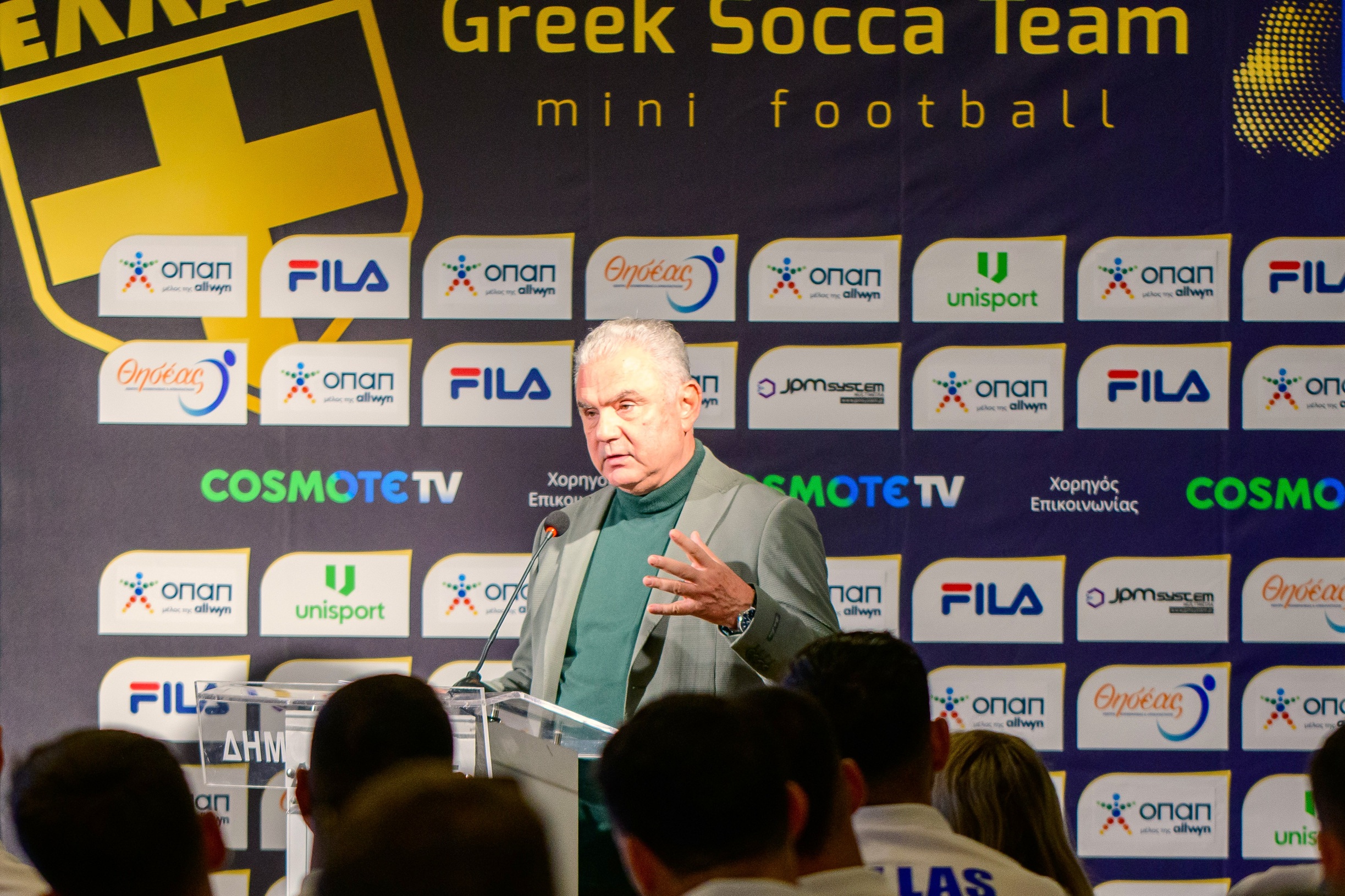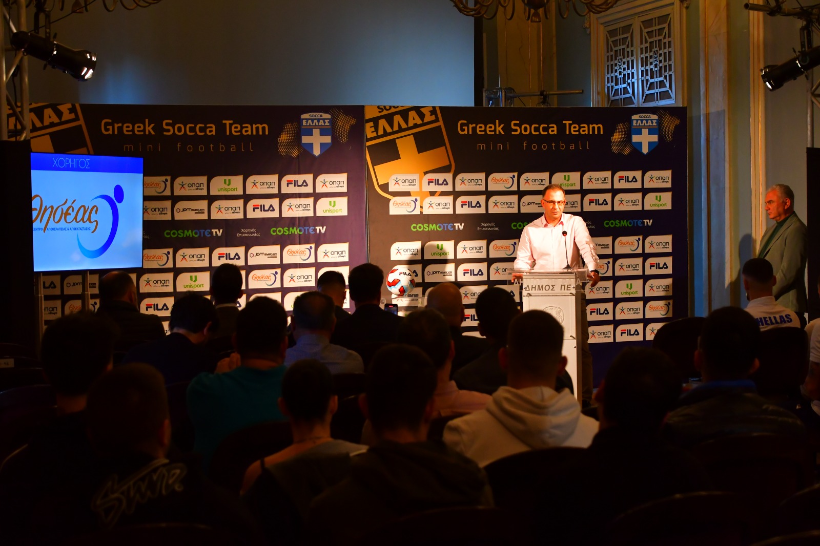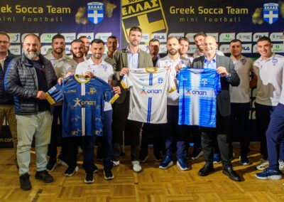 Στην επίσημη Συνέντευξη Τύπου και παρουσίαση της φανέλας που πραγματοποιήθηκε στο Δημοτικό Θέατρο Πειραιά, παρουσία θεσμικών εκπροσώπων, χορηγών και φίλων του Socca, παρουσιάστηκε η Ελληνική Ομάδα που θα εκπροσωπήσει τη χώρα μας στο φετινό Παγκόσμιο Κύπελλο, Socca World Championship, το οποίο θα διεξαχθεί στο Κανκούν του Μεξικό από τις 29 Νοεμβρίου έως τις 7 Δεκεμβρίου και θα μεταδοθεί από την Cosmote TV.