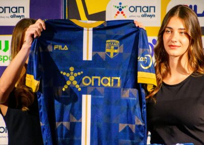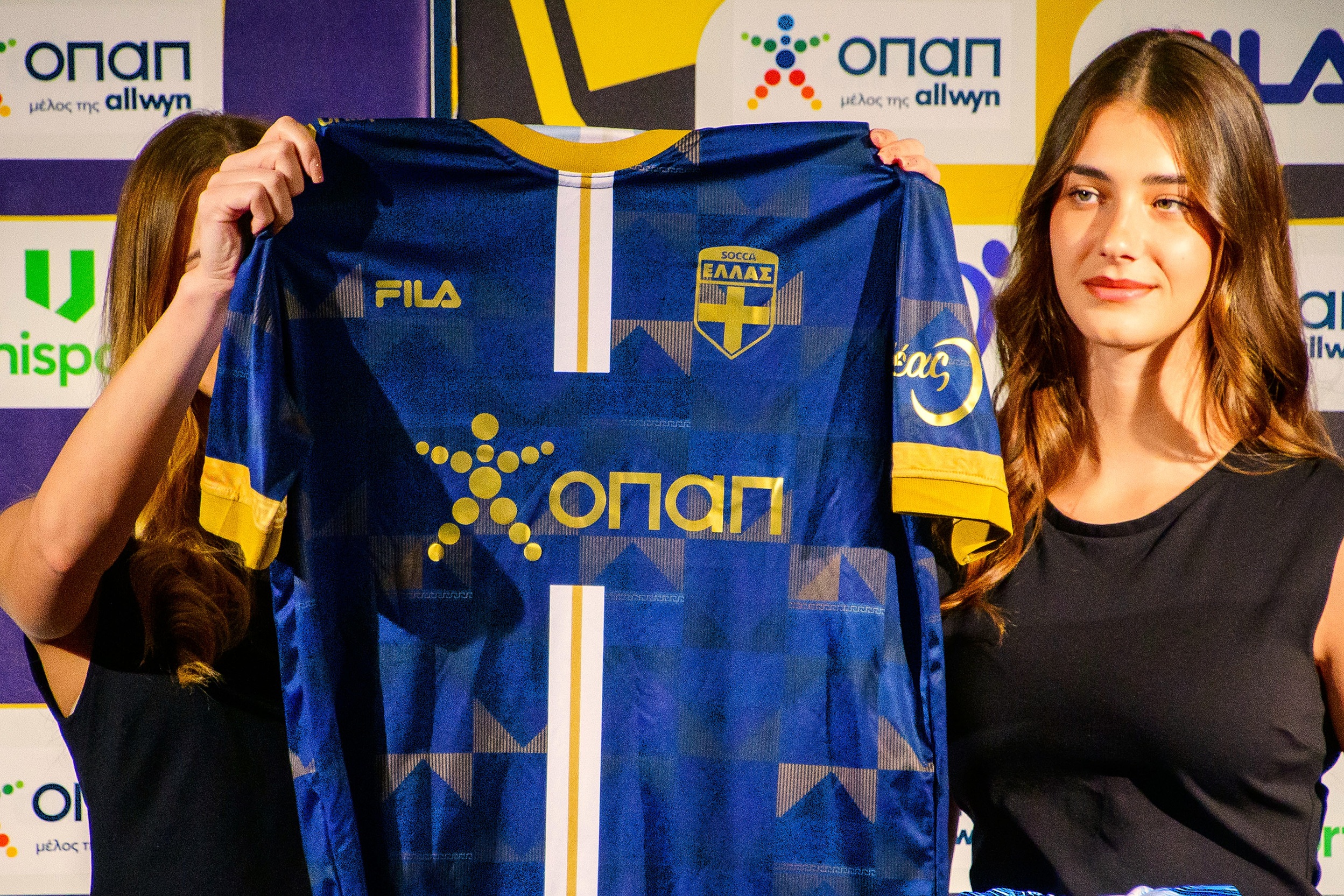 Η μεγάλη αποκάλυψη της βραδιάς ήταν η Limited Edition σκούρα μπλε εμφάνιση, με χρυσές λεπτομέρειες και γεωμετρικά μοτίβα που παραπέμπουν στην αρχαιοελληνική τέχνη. Ξεχωριστή στιγμή αποτέλεσε η παρουσίαση του χρυσού λογότυπου του ΟΠΑΠ, ένα πρωτότυπο και ιδιαίτερα εμβληματικό στοιχείο για επίσημη εμφάνιση του αντιπροσωπευτικού μας συγκροτήματος, στοιχείο που συνδέεται με την τελευταία παρουσία της εταιρίας με αυτό το brand σε οποιαδήποτε ομάδα πριν την ιστορική της μετάβαση σε Allwyn τον ερχόμενο Ιανουάριο.